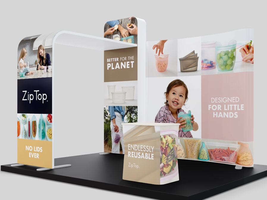 The goal at Zip Top is to help reduce plastic waste by offering easier to use reusable containers. Simply put, Zip Top is on a mission to be better for you, your family and the planet. We were hired to design a minimalistic cohesive "on brand" suite of trade show materials that presented as approachable and high end, while utilizing Zip Top's primary colors, catch phrases and photography to draw potential clients to their booth. The end result did just that and more.